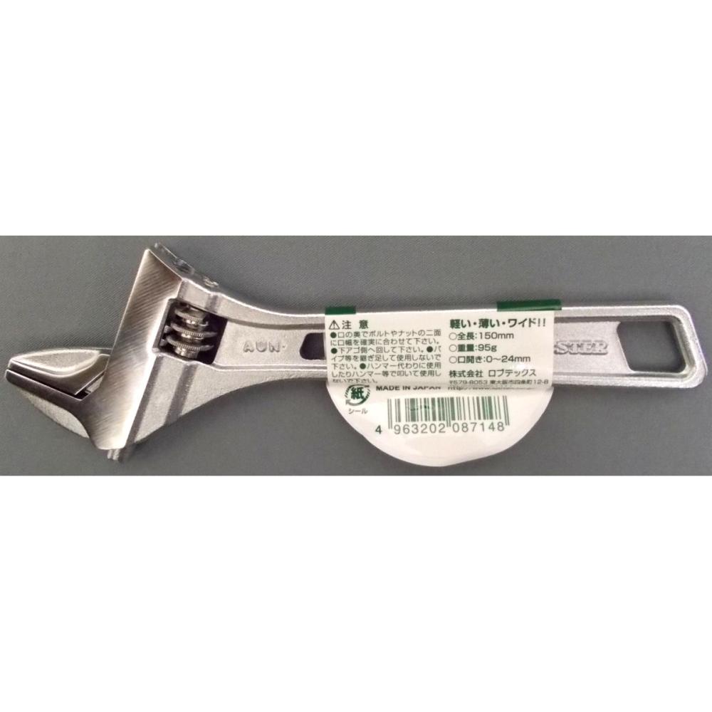 軽くて薄いワイド型です。 薄い:手にスッとなじみ、狭い場所での作業や薄形ボルトナットの使用もこなす優れものです。同口開き従来品(強力型)より約50%も軽く、手の疲れを軽減する大胆なフォルムです。 ワイドサイズでワンサイズ上のボルトナットをガッチリつかみ、作業はスピーディです。