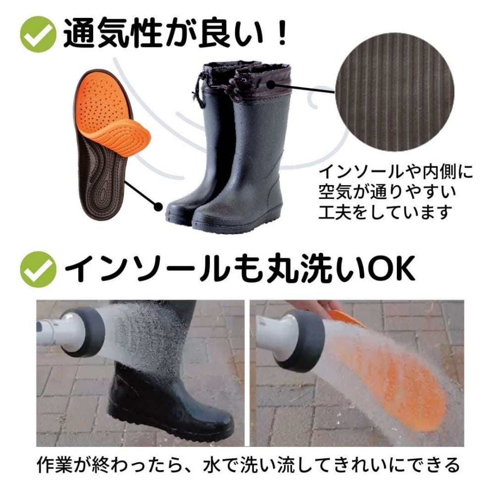 ・汚れは水で洗い落とし、直射日光を避けて自然乾燥させてください。ストーブなど火のそばには絶対に置かないでください。熱により長靴が劣化したり変形する原因となります。