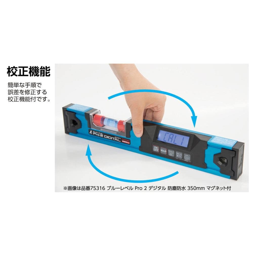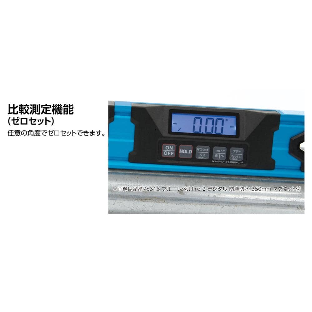 "防塵・防水性能は保護等級IP64。角度(度)、勾配(%)、立ち上がり(mm/m)の3種類の測定が可能。 0°、90°付近になると傾きによって3段階のブザー機能付き。本体を逆さにすると表示も自動的に上下反転します。 デジタルユニット部は校正機能、ホールド機能、ゼロセット機能、バックライト機能、オートパワーオフ機能、電池消耗警告機能付きです。 底面がV溝付なのでパイプの上でも安定して計測できます。底面マグネット付き。"