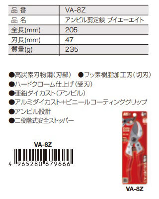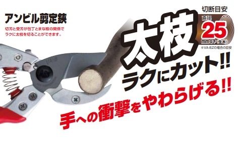 切刃と受刃がまな板と包丁の関係で楽に太枝を切ることが出来ます。