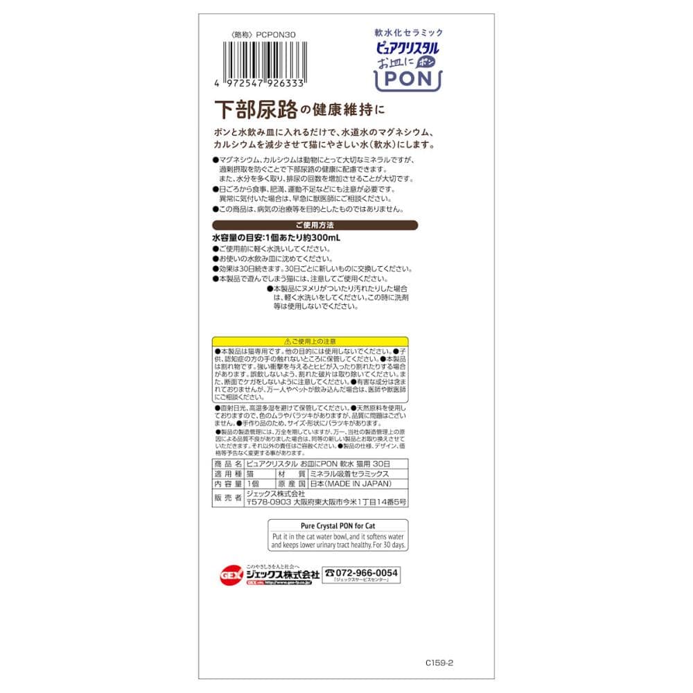 ●ポンと水飲み皿に入れるだけで、水道水のマグネシウム、カルシウムを減少させて猫にやさしい水(軟水)にします。