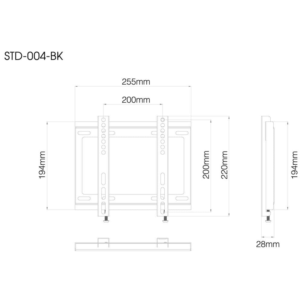 テレビを壁掛けにしてお部屋をスッキリと出来るTV壁掛け用金具。TV対応サイズ:26~43Vまで。耐荷重:30kg。壁~ディスプレイ背面までの距離28mm。取付:VESA対応。VESA取り付け幅75~200、高さ75~200mm。付属品:水平器。