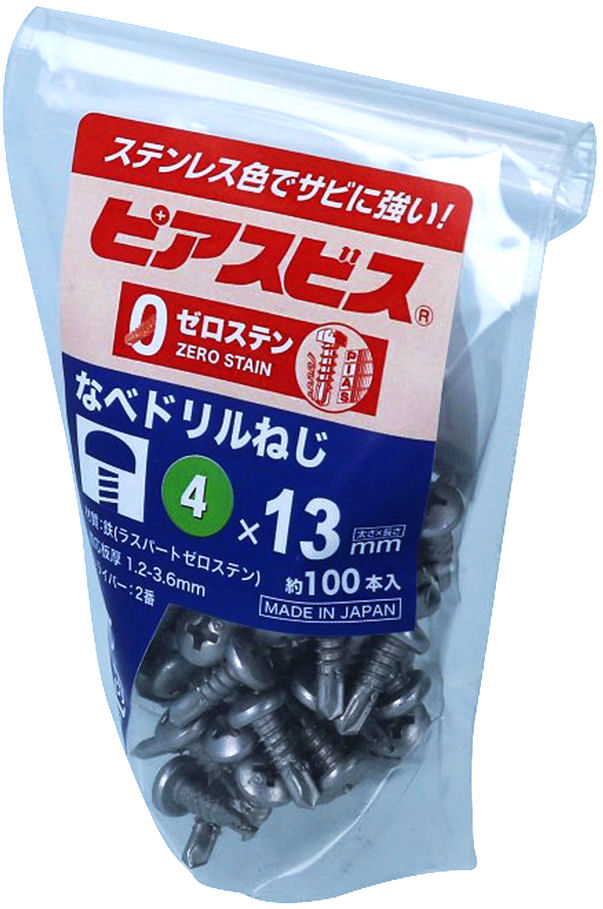 ステンレスより耐食性が強く錆びずらいピアス製のドリルねじです。