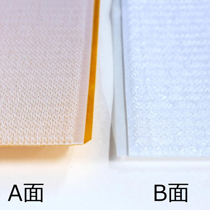 サイズ 50mm×150mm カラー 白 A面とB面を貼り合せた使用する面ファスナー 繰り返し何度も引き剥がして使用できます。 柔らかい材料なので肌あたりも柔らかです。 糸に伸度があるので、はがすときは滑らかに剥がれます。 ハサミで好みのサイズにカットして使用できます。 <注意> ・貼り付ける面の水分、油分、ホコリなどをきれいに取り除いてください。 ・十分な圧力をかけて貼り付けてください。 ・10℃以下の環境では粘着力が低下します。 ・貴重品、壊れやすい物、重量物への使用はしないでください ・高温多湿となる場所、直射日光の当たる場所での保管は避けてください。 ・フッ素処理面、シリコン、軟質塩ビ、PP・PE、ザラザラ面には接着できません。 ・水に浸けた状態では強度が下がります。