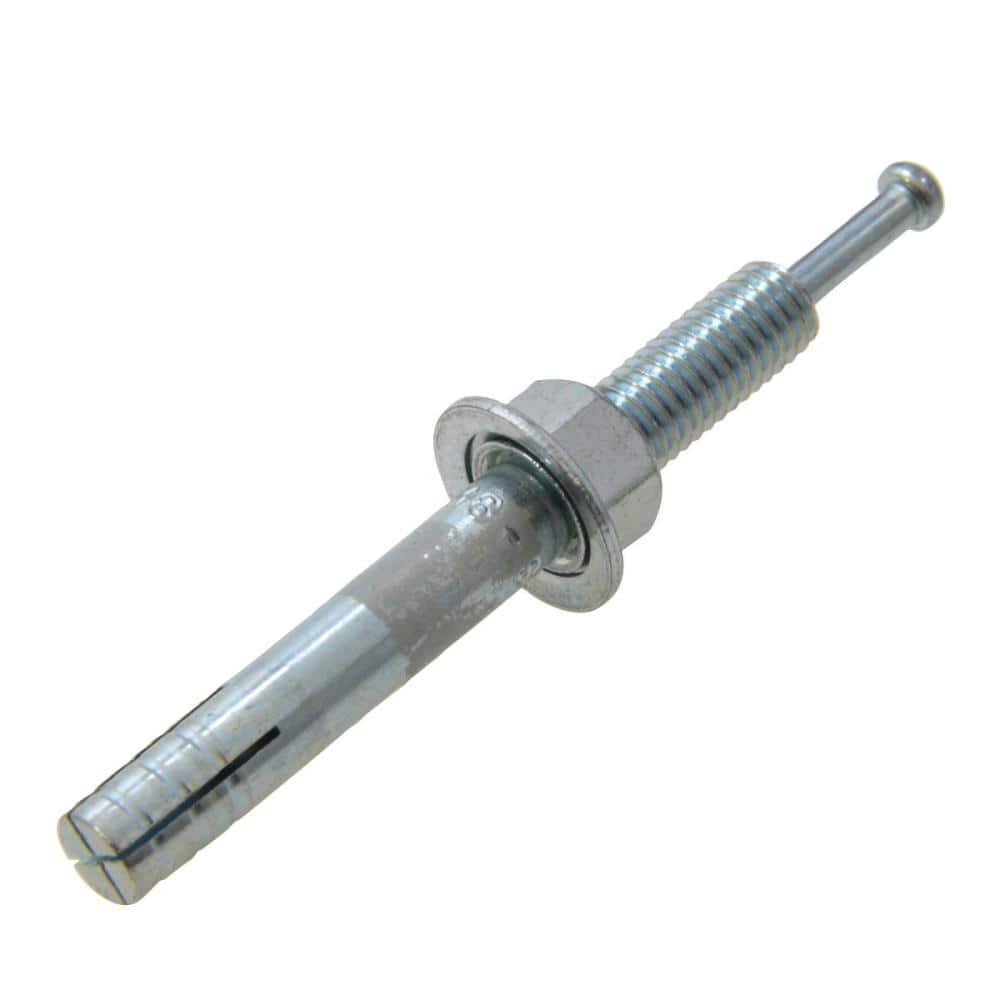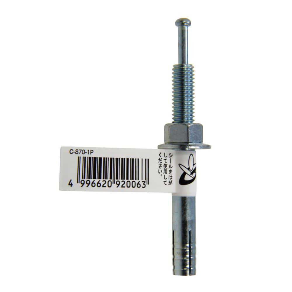 芯棒打込み式おねじタイプのあと施工アンカーです。下穴をあけたコンクリートに本体を挿入し芯棒を打込むと、本体の拡張部が開いてコンクリートの下穴の壁に食込み、固着します。スチール製で環境に配慮した三価クロメート処理品です。コンクリートに打込み相手部材を固定します。RoHSなど環境規制対応品です。