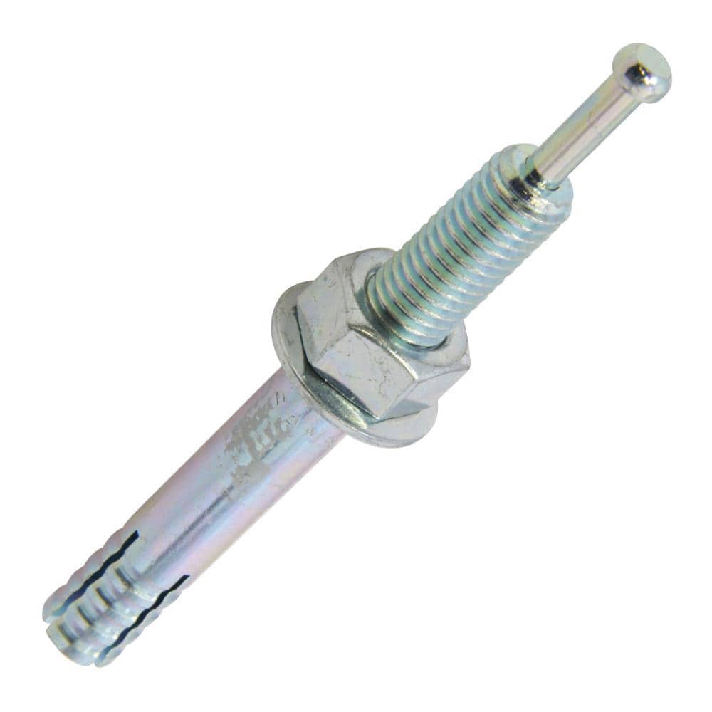 芯棒打込み式おねじタイプのあと施工アンカーです。下穴をあけたコンクリートに本体を挿入し芯棒を打込むと、本体の拡張部が開いてコンクリートの下穴の壁に食込み、固着します。スチール製で環境に配慮した三価クロメート処理品です。コンクリートに打込み相手部材を固定します。RoHSなど環境規制対応品です。