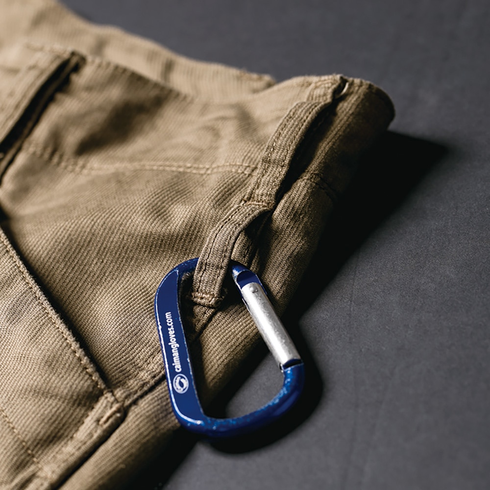 ウエストストレッチ。ヴィンテージタイプの腰裏。動きやすい股下クライミングカット。便利なカラビナループ付き。右サイドのマルチポケットは深めで長財布も収納可能。