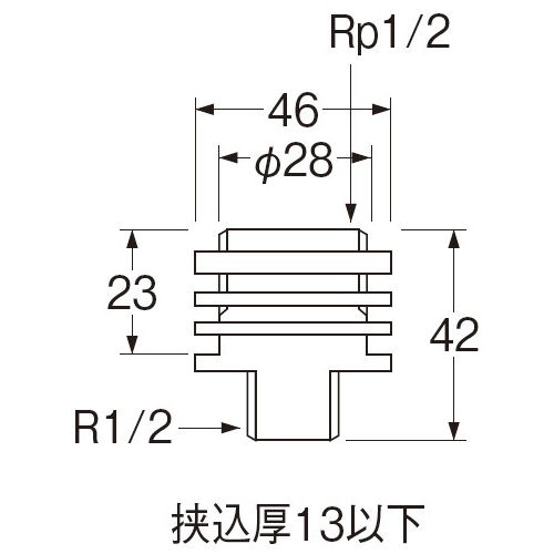 配管に水栓等を取付る際の取出し金具呼び13用・直径46mmビス・パッキン(2枚)付き挟み込み厚み46mm以下第三者認証マーク付