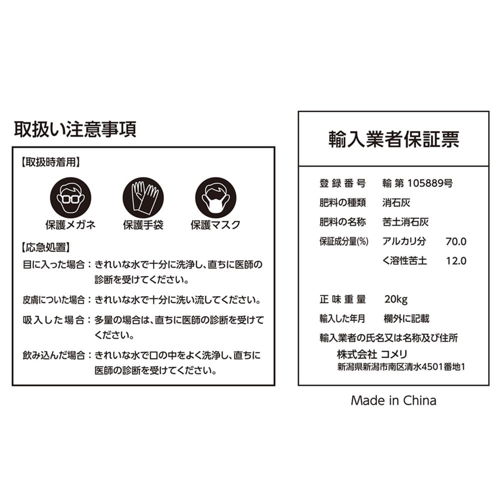 ・保証成分量(%):アルカリ分 70.0、く溶性苦土 12.0
