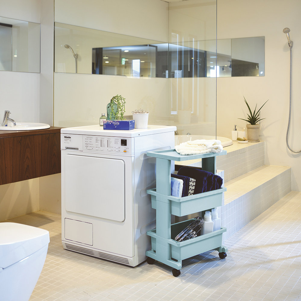 ■キャスター付きで移動も簡単 ■天板付きでちょっとした物置きに便利。ふちが少し盛り上がっているので、モノを置いても簡単に落ちません。 ■カゴ自体に負荷さがあり、背の高いものでも入れやすい。カゴはA4サイズがすっぽり入るサイズです。 ■プラスチックなので水回りでも使いやすい。キッチン、ランドリー、リビングと様々なシーンで大活躍!