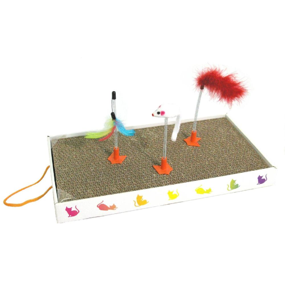 段ボール製猫爪みがきに刺して使うじゃらしです。つめみがきを立ててもご使用が可能です。