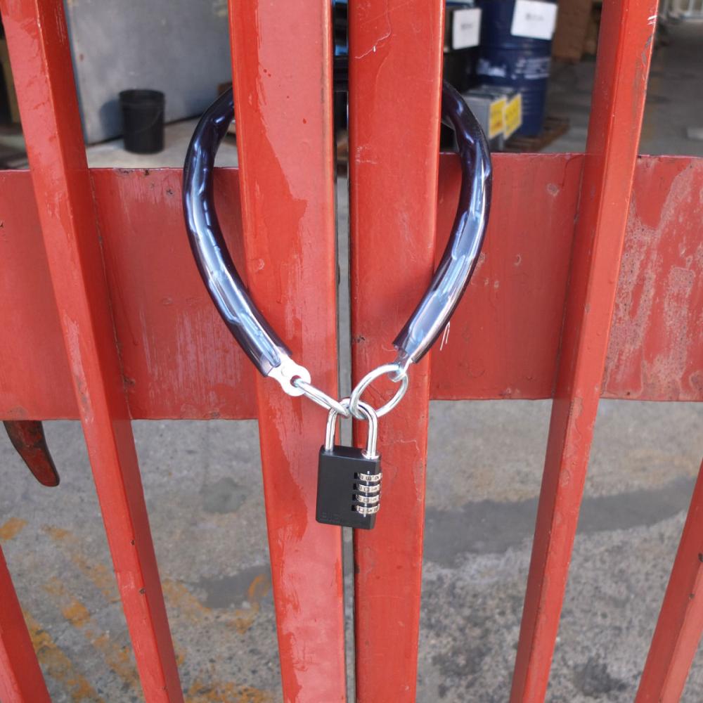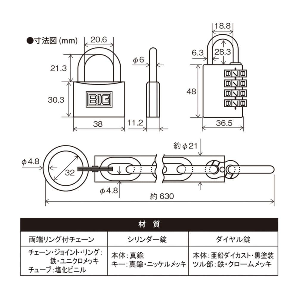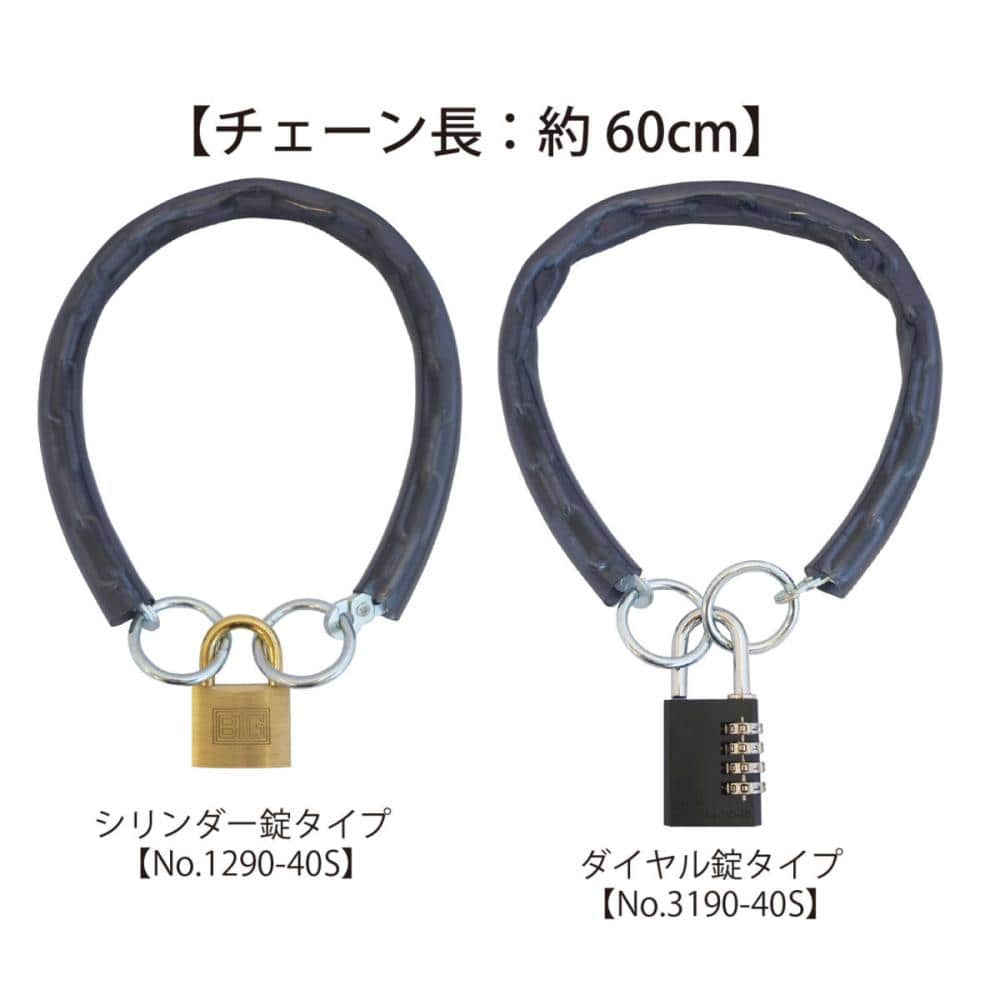対象物をキズつけにくいビニールチューブ付チェーンと南京錠のセット品。両端リング付きで扱いやすいスチール製チェーン。解錠番号は何度でも変更可能。