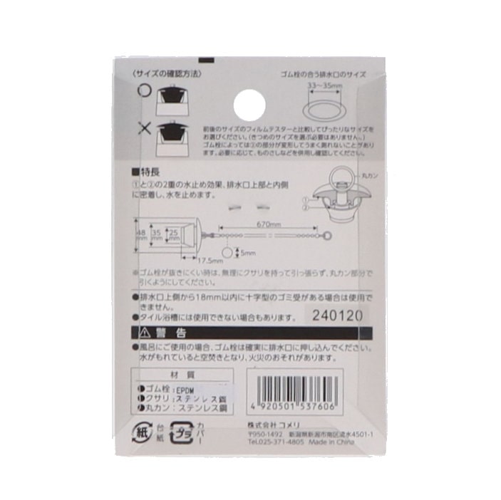 ※ゴム栓が抜きにくい時は、無理にクサリを持って引っ張らず、