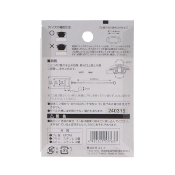 ●サイズ42~44mmのゴム栓です。