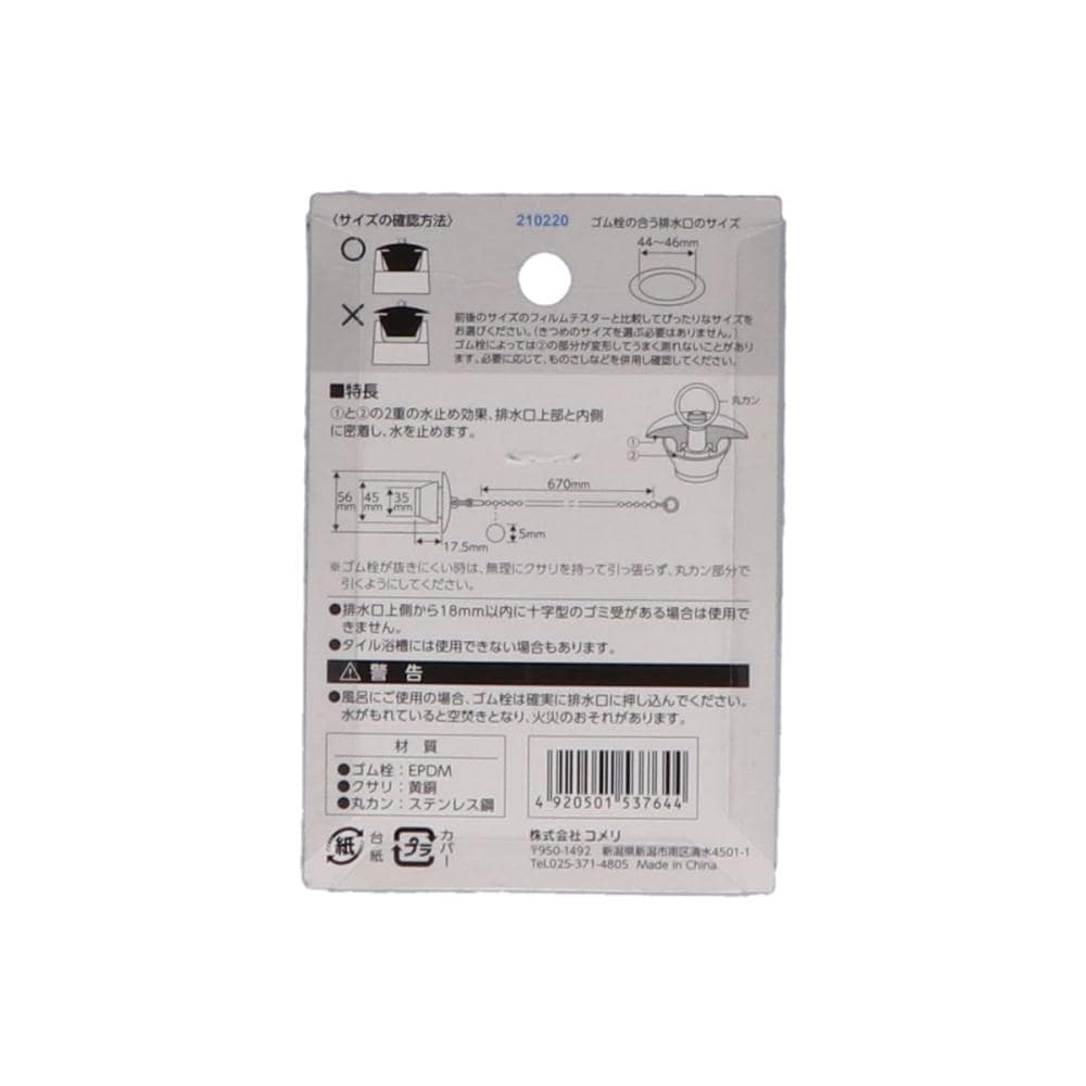 ※ゴム栓が抜きにくい時は、無理にクサリを持って引っ張らず、 丸カン部分で 引くようにしてください。