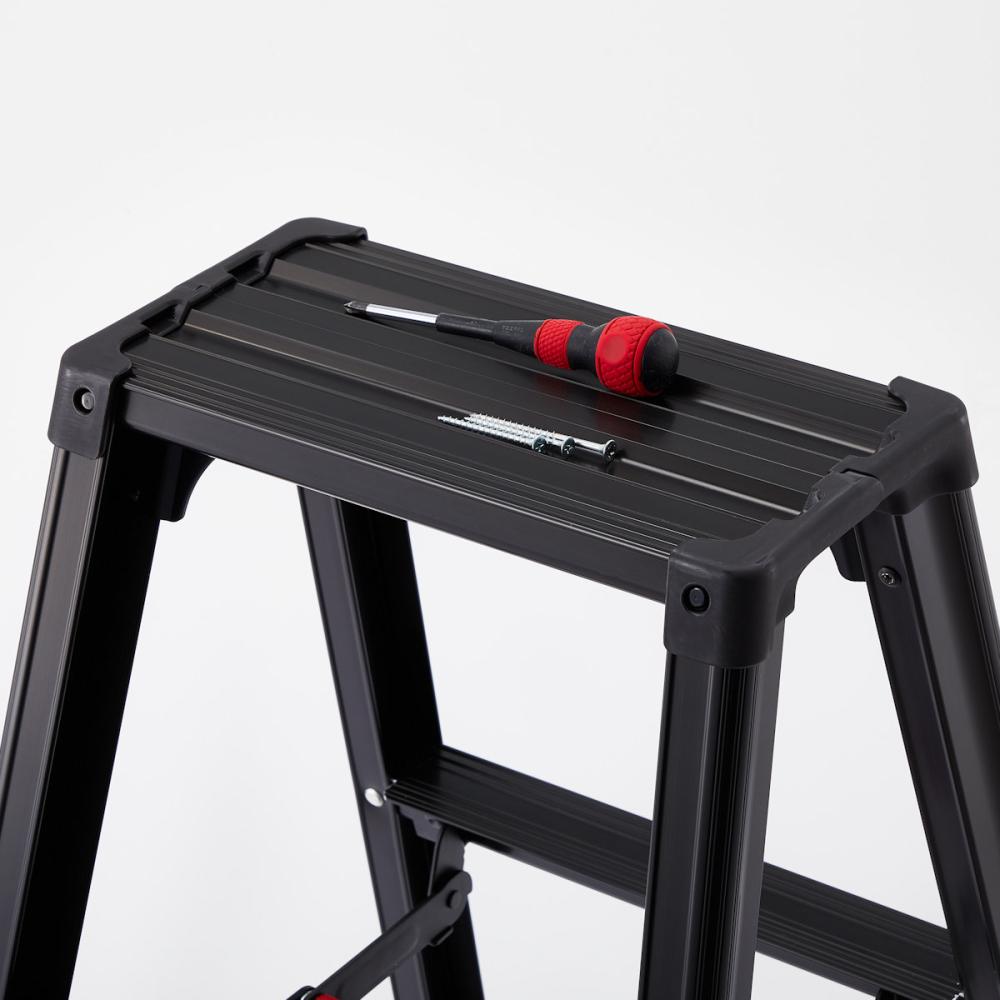丸みに拘ったワンタッチバー付軽くて丈夫な脚立 天板トレー形状3尺 ブラックカラー ステップ幅55mm
