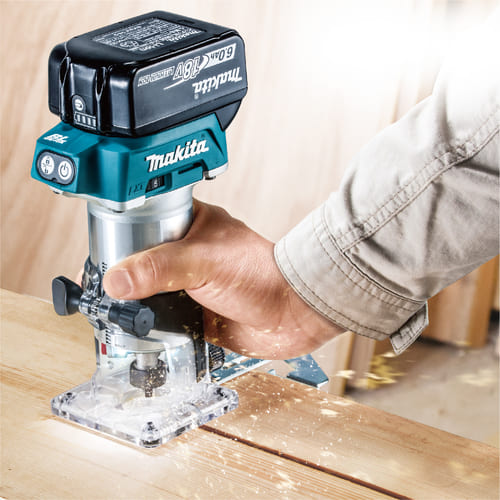 こちらの商品は本体のみ仕様です。 ご使用には18Vバッテリ、充電器が必要です。 作業スピード約30%アップ(当社AC機比)。LEDライト2灯。 速度調整ダイヤル。シャフトロック付。 意図しない起動を防ぐ「待機スイッチ」。 集じん機接続可能。 標準付属品:ストレートビット6、ストレートガイド、ダストノズル、テンプレットガイド、コレットコーン8、スパナ22・13、トリマガイド。