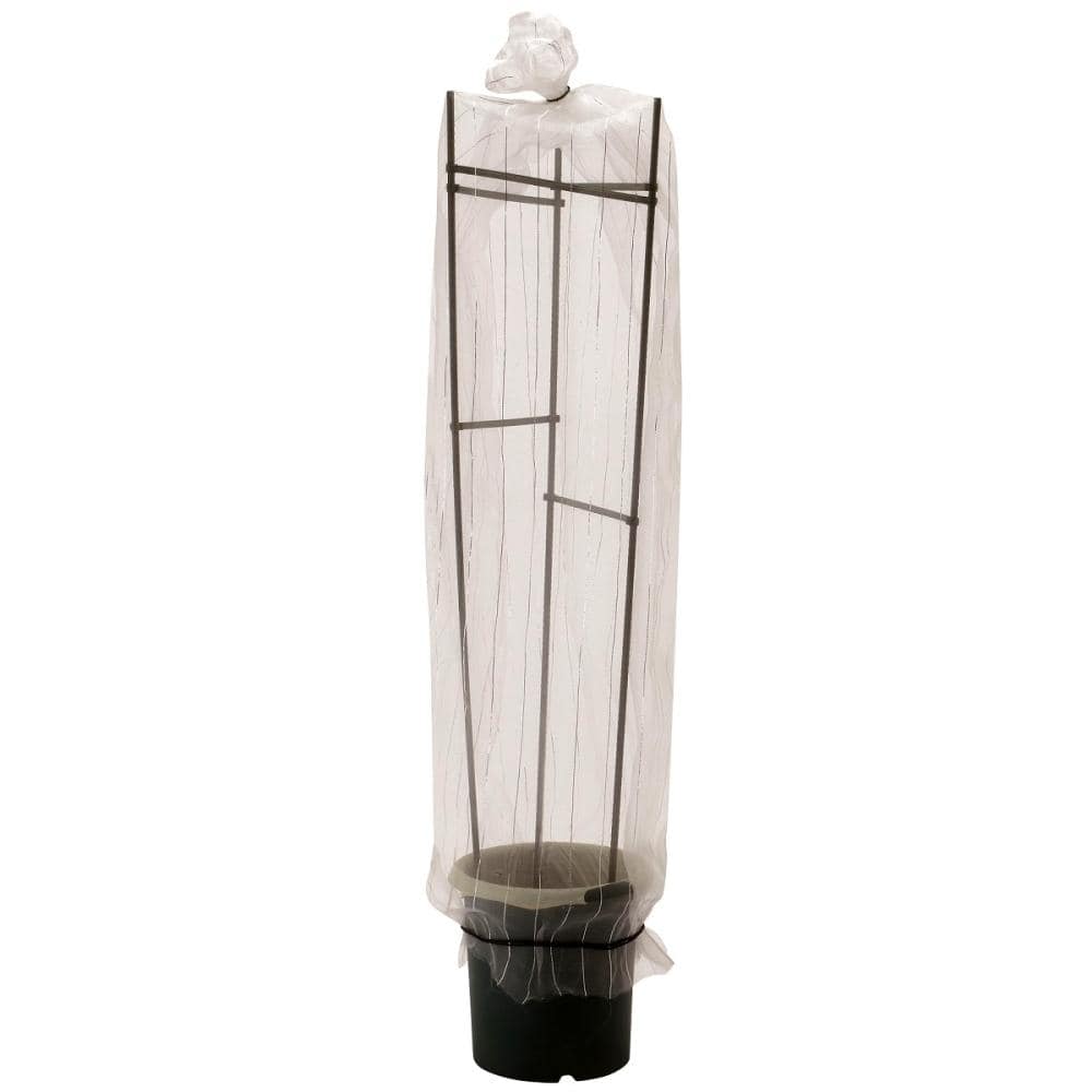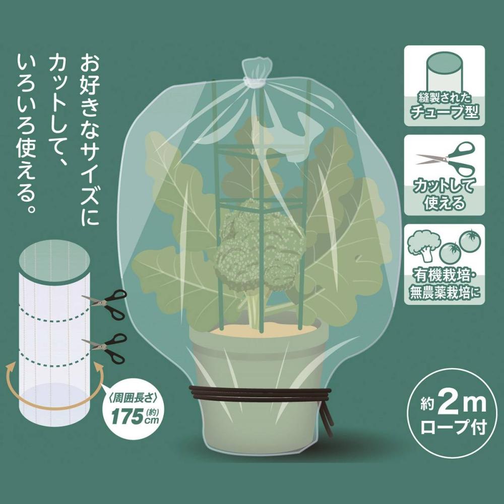 ●ご使用の際は地面やプランターの間に隙間を作らないでください。防虫ネットが風で飛ばされないように止め具等でプランターや支柱に固定してご使用ください。