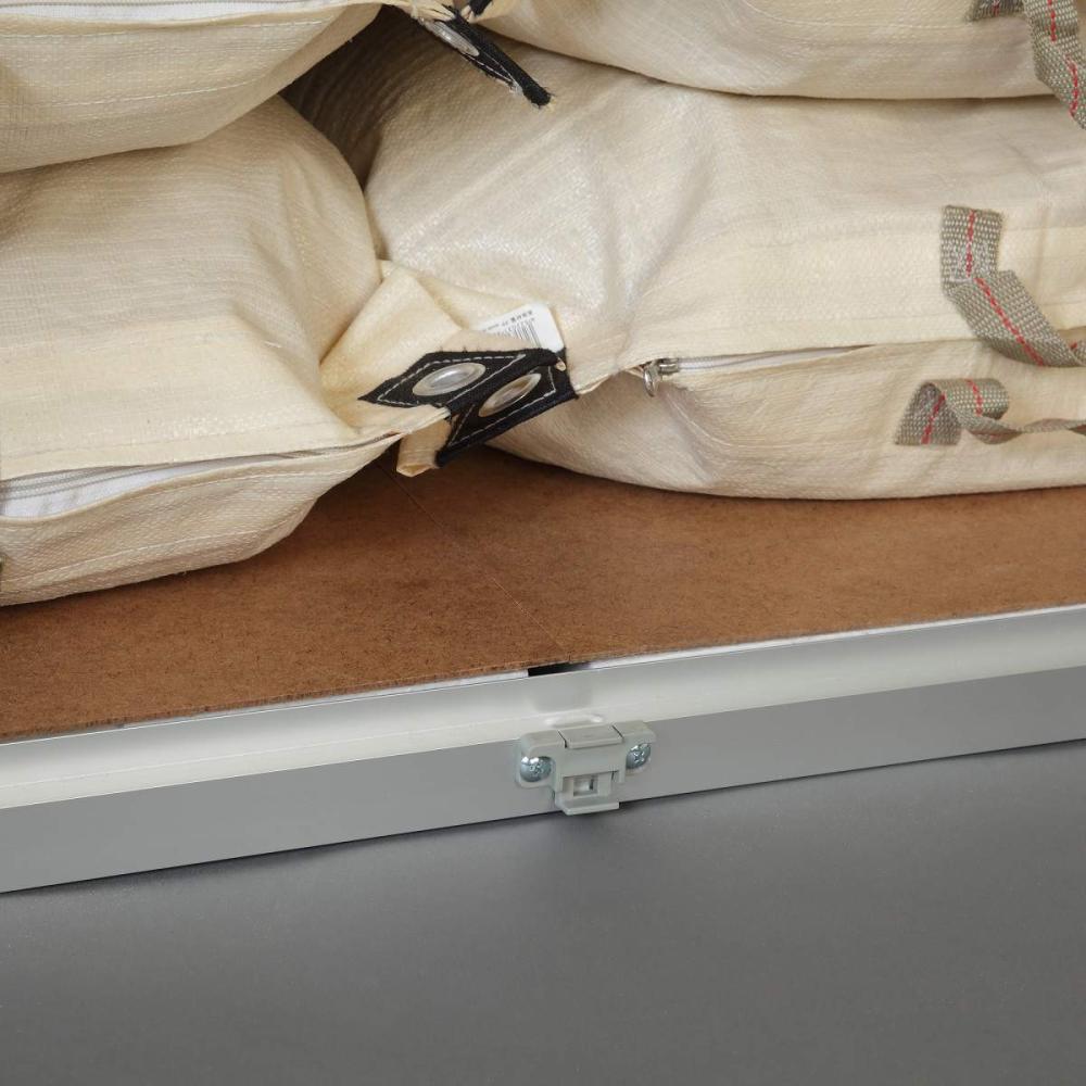 下敷(底板上面部):発泡スチロール・ハードボード、扉取っ手・ストッパー・ポリプロピレン樹脂(PP)