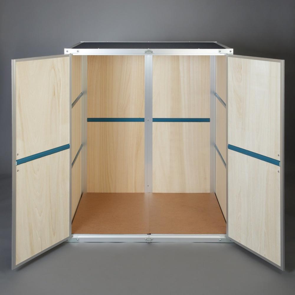 材質:外面材・ガルバリウムカラー鋼板、内面材・桐無垢材(板厚9mm)、外枠・アルミニウム合金