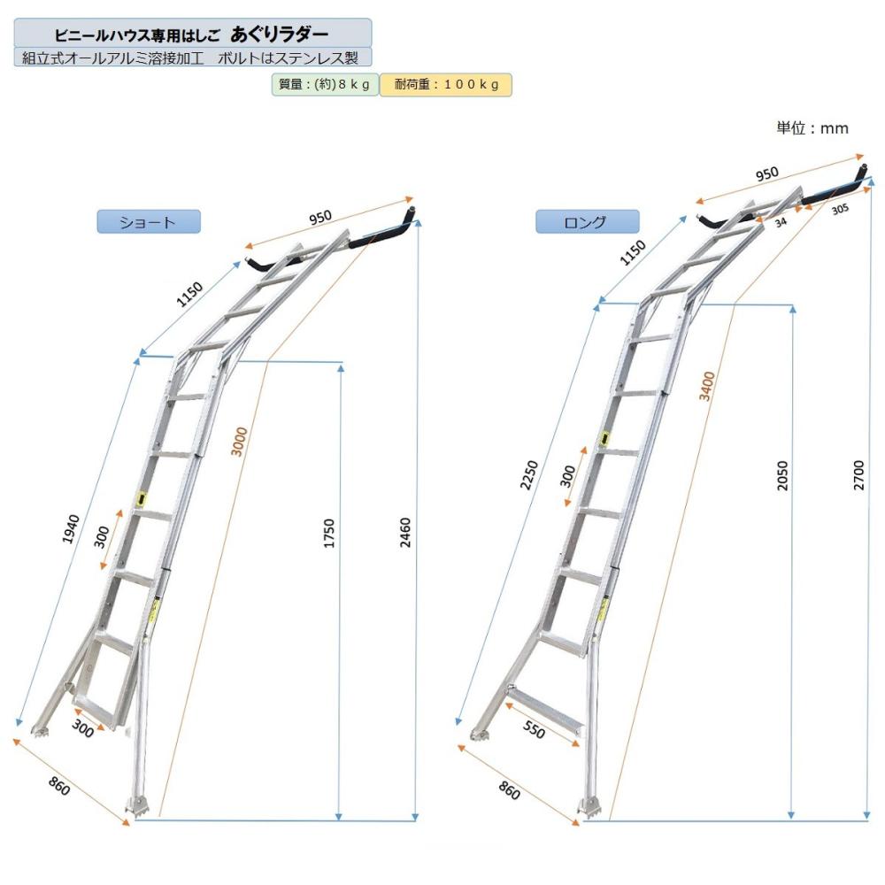 ハウス形状に合わせて高さ2段階(ショート246cm・ロング270cm)調整可能です。