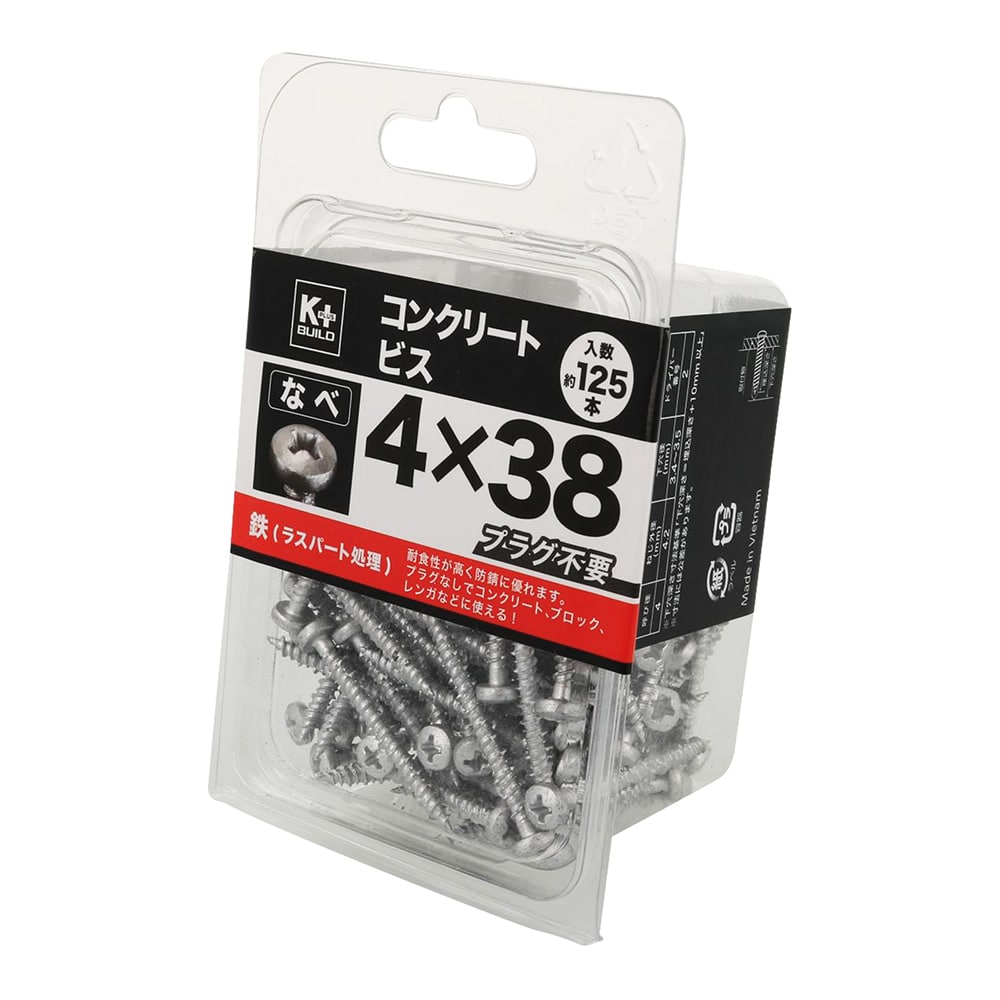 材質は鉄で表面処理はラスパート。特殊なねじ山が高い引き抜き強度を発揮します。プラグなしでコンクリート、モルタル、ブロックなどにご使用できます。