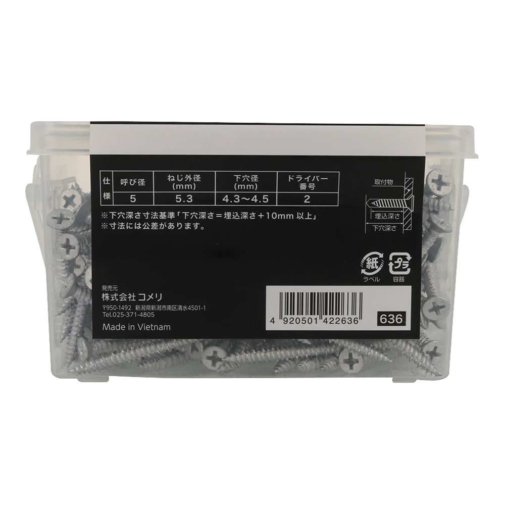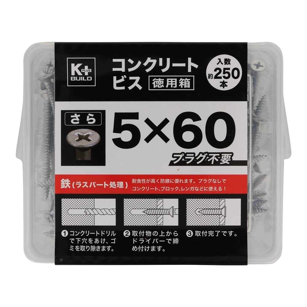 軽量物の取り付けに使用します。材質は鉄で表面処理はラスパート。特殊なねじ山が高い引き抜き強度を発揮します。プラグなしでコンクリート、モルタル、ブロックなどにご使用できます。下穴径 4.3mm使用荷重 24kgf。