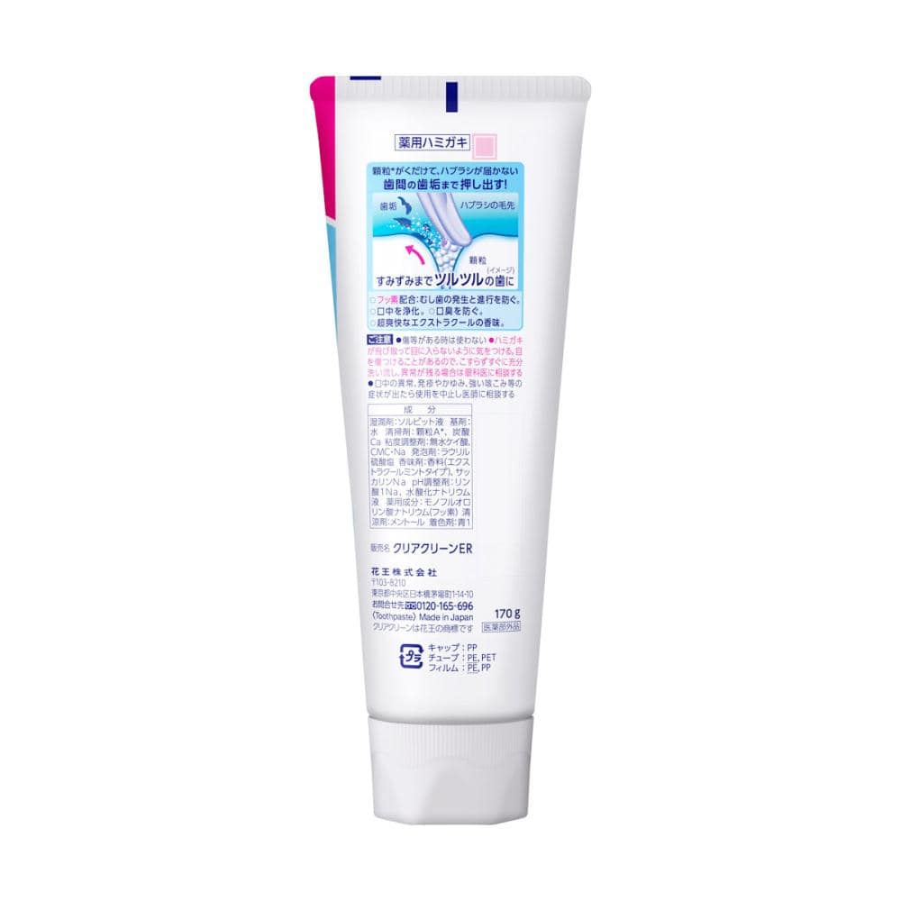 顆粒(清掃剤)がくだけて、ハブラシが届かない歯間の歯垢まで押し出す! すみずみまでツルツルの歯に。 フッ素配合:むし歯の発生と進行を防ぐ。 口中を浄化し、口臭を防ぐ。 超爽快なエクストラクールの香味。(医薬部外品)