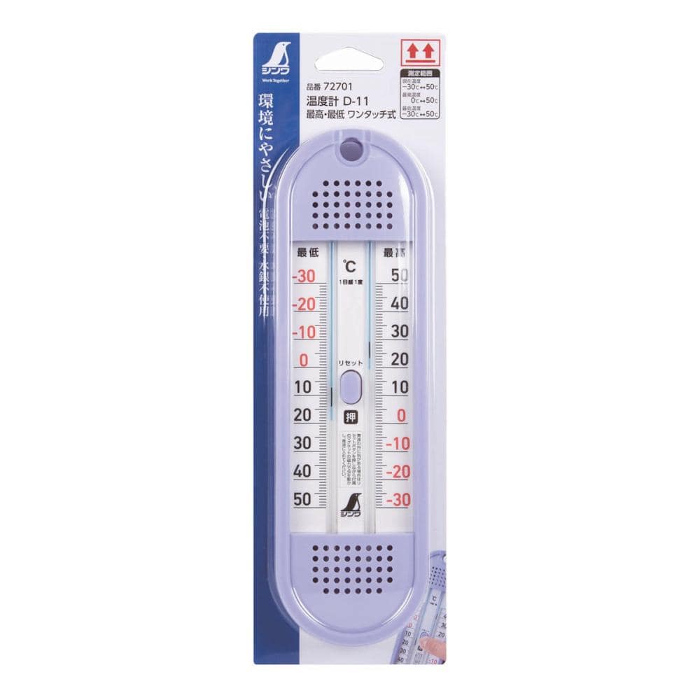 リセット後の最高温度、最低温度の確認と、現在温度が測定できます。 リセットはワンタッチボタンを押すだけ。 多少の水に濡れても大丈夫です。