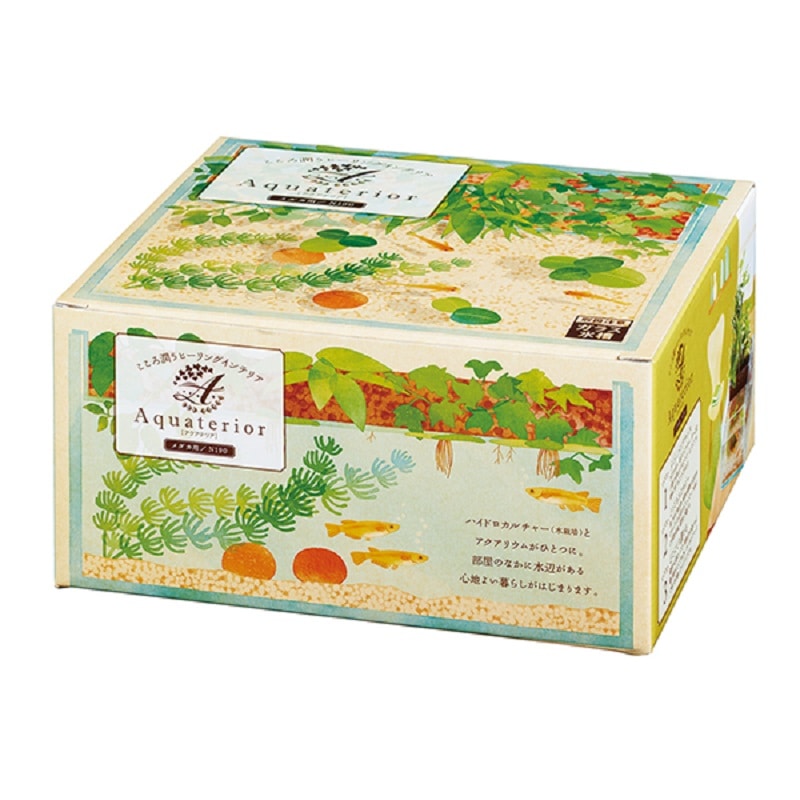 セット内容:ガラス水槽、専用プランター、セラミックサンド(植え込み材)、底砂、アクアテリアストーン、ガラスフタ(フタ受け付)、カルキ抜き(塩素中和剤)、メダカのエサ