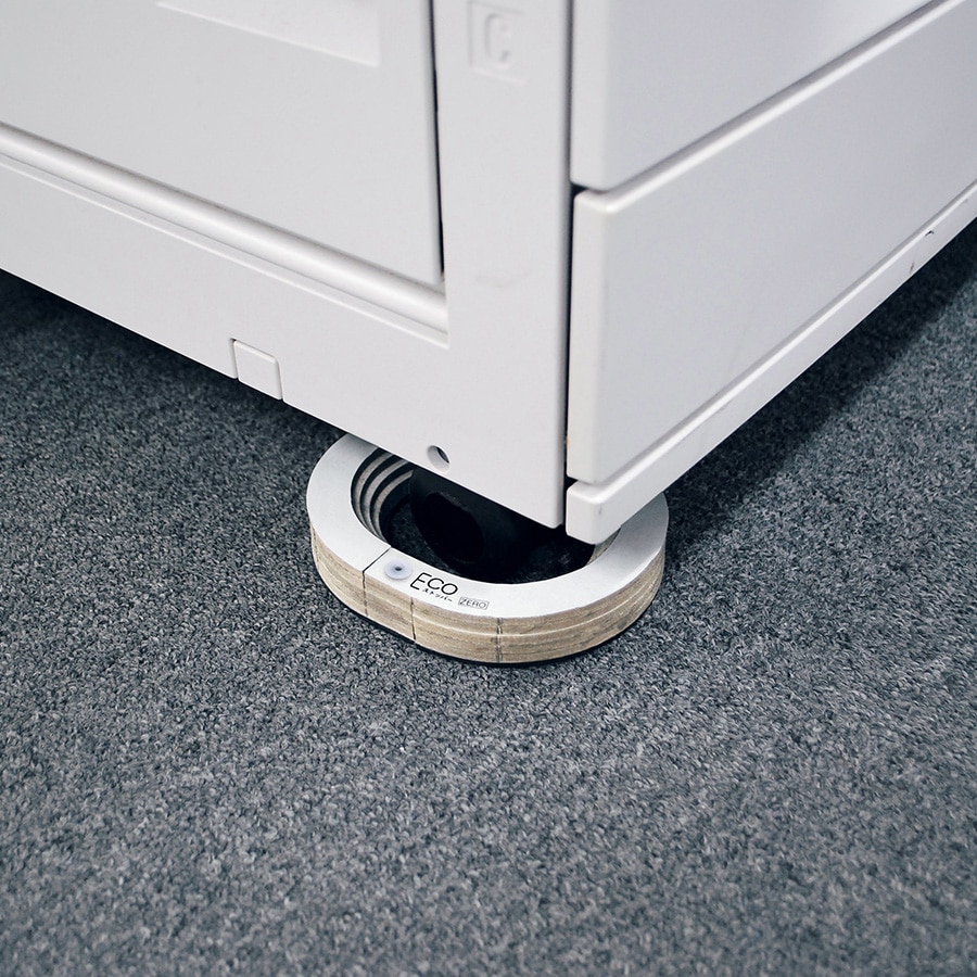主原料は再生紙です。耐用年数約8年。使用可能床面はフローリング、カーペット、たたみ、タイルなどです。開閉式でラクラク設置。対角の2ヶ所で大丈夫です。コピー機などを持ち上げる必要がありません。耐荷重1個あたり100kg。