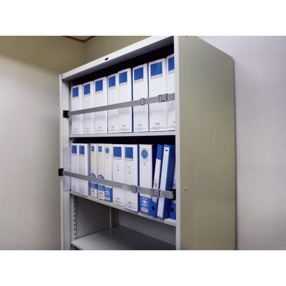 書類落下防止ベルト。スライド式金具とワンタッチバックルの2通りの開閉ができます。内付用。