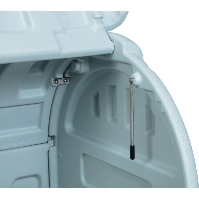 外寸:1,300×890×H1,060mm(※キャスター除く寸法) 容量:800L 蓋開口時高さ1,590mm(※キャスター除く寸法) 蓋ストッパー付き 水抜き孔有り キャスターファイ100・自在4輪車(内2輪ストッパー付き) 耐荷重:160kg