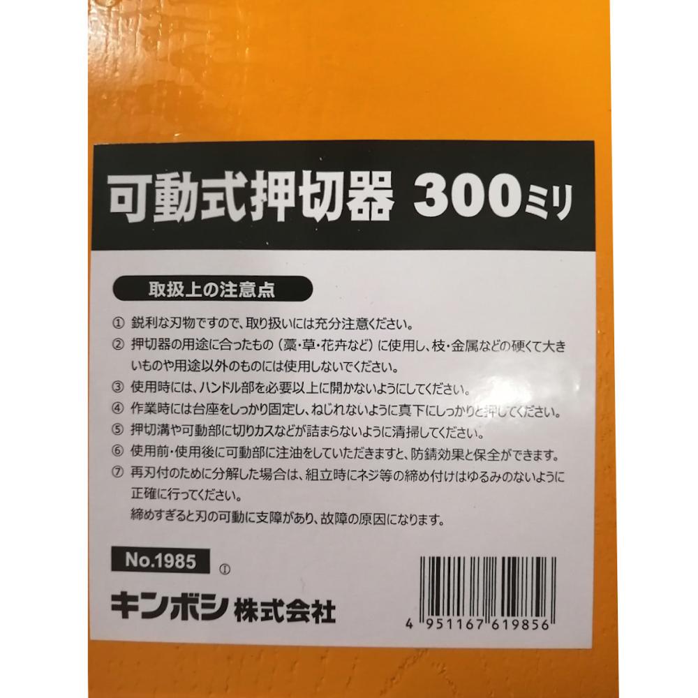 ●取扱上の注意点 1、 鋭利な刃物ですので、取り扱いには充分注意ください。 2 、押切器の用途に合ったもの (藁・草・花卉など)に使用し、枝・金属などの硬くて大きいものや用途以外のものには使用しないでください。 3、 使用時には、ハンドル部を必要以上に開かないようにしてください。 4、 作業時には台座をしっかり固定し、ねじれないように真下にしっかりと中してください。 5 、押切溝や可動部に切りカスなどが詰まらないように清掃してください。 6、 用前・使用後に可動部に注油をしていただきますと、防錆効果と保全ができます。 7、刃付のために分解した場合は、組立時にネジ等の締め付けはゆるみのないように正確に行ってください。 締めすぎると刃の可動に支障があり、故障の原因になります。