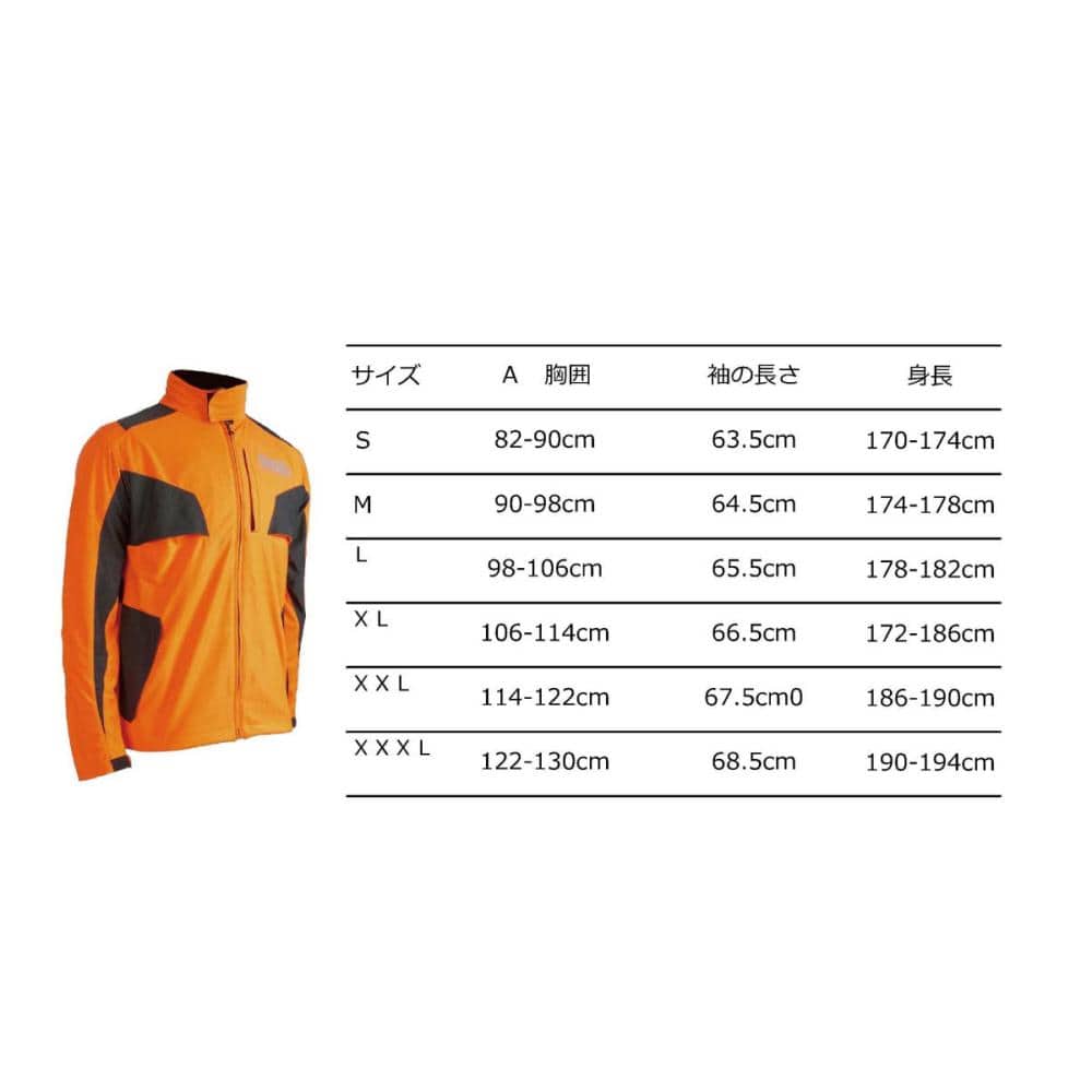 Lサイズ:胸囲98-106cm / 袖の長さ65.5cm / 身長178-182cm