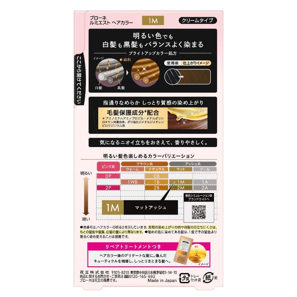 明るい色でも白髪も黒髪もバランスよく染まるから白髪を気にせず明るい髪色楽しめる! クリームタイプの白髪染め。 指どおりなめらか、しっとり質感の染め上がり。 気になるニオイ立ちをおさえて、香りやさしく(医薬部外品) ※ヘアカラー後のデリケートな髪に。 リペアトリートメントつき。 傷んだキューティクルを補修し、しっとりまとまる髪へ。