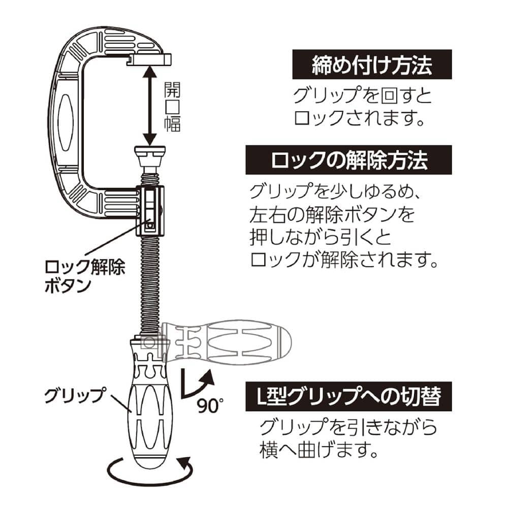 ●L型グリップ切替で強力締付
