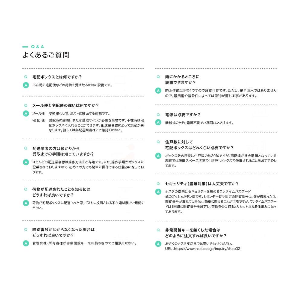 *「プチ宅」捺印システムは居住者の受領印を代行するものなので、捺印付仕様を必ず1台設置してください。*「受取可能な最大サイズ」とは、宅配ボックスで受取や取出が可能な最大寸法です。最大サイズを超える荷物の受取はできません。目安寸法につき、梱包の状態によっては受け取れない場合もございます。注) 幅木には宅配ボックスと連結するためのねじを付属しております。(トラス小ネジ(SUS)M5×8 4本)注)幅木を使用して床置設置した場合、床面のアンカーだけでなく、背面または側面も必ず固定してください。注)防水構造(IPX4)を採用しております。完全防水ではありませんので、暴風雨や諸条件によっては荷物が濡れることがあります。注)捺印付仕様には01 ~ 10のボックスナンバーシールが同梱されています。それ以外のナンバーは別途制作となります。