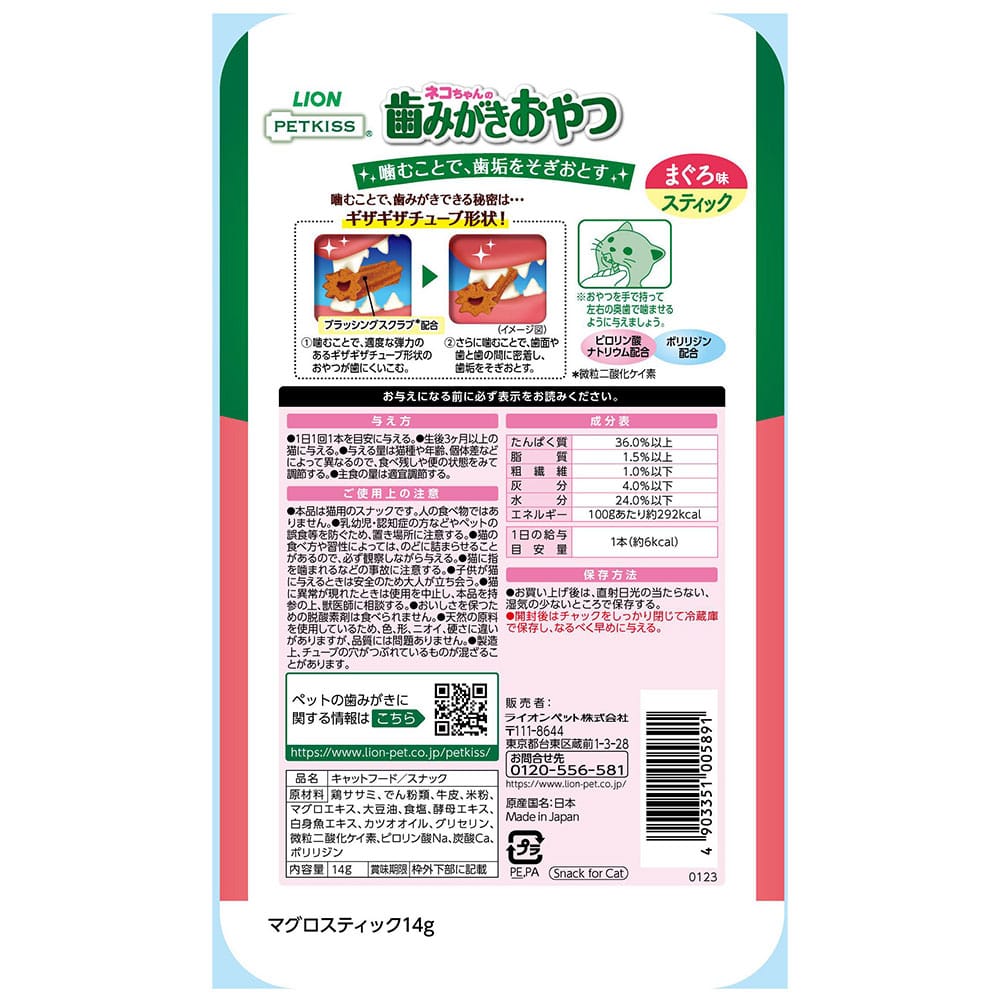 ギザギザチューブ形状にすることで、歯に食い込みやすく、さらにブラッシングスクラブ※1を配合し、噛むことで歯垢を除去。 ピロリン酸ナトリウム、ポリリジン配合。 手に持って与えやすいスティックタイプ。 ※1 微粒二酸化ケイ素