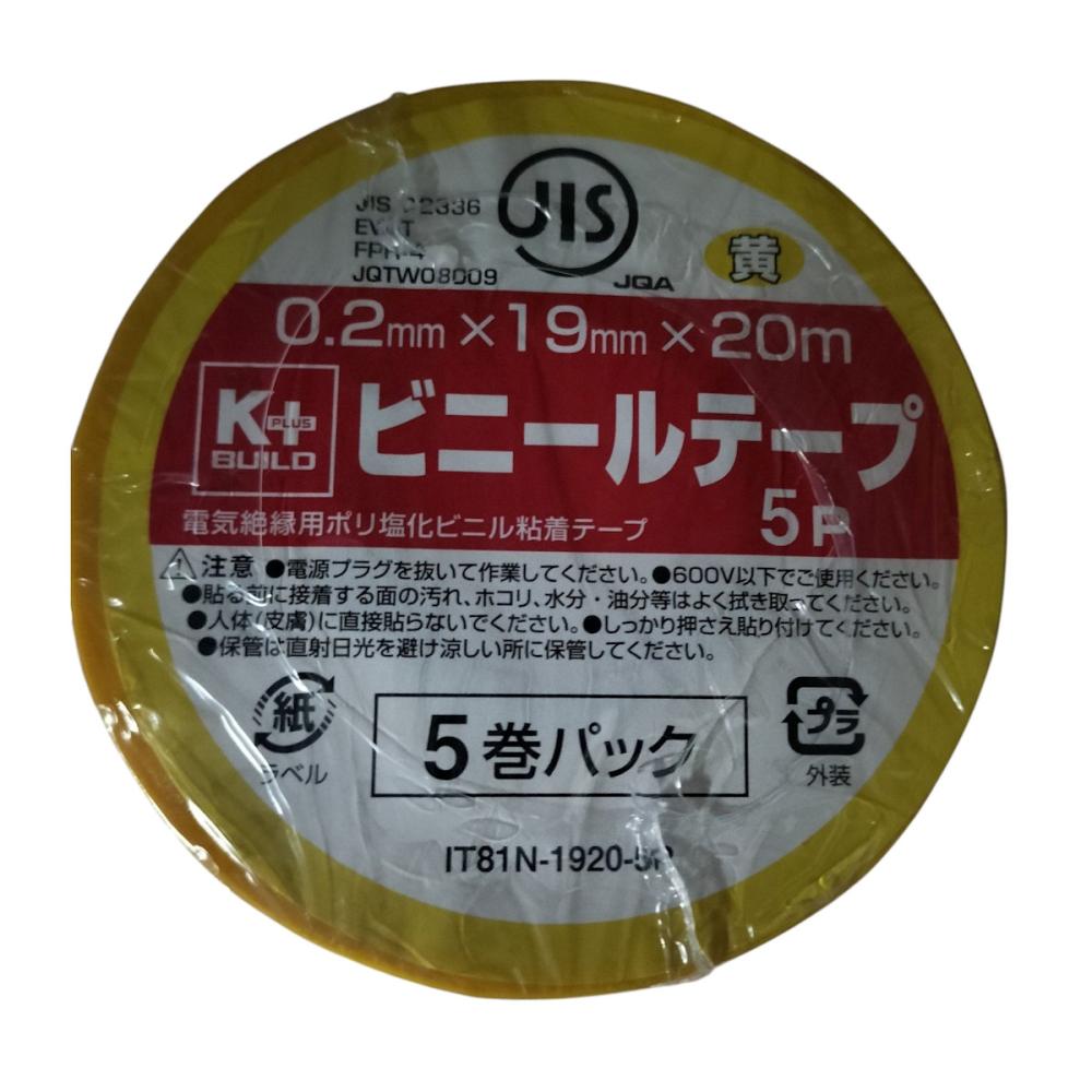 K+BUILD PVC絶縁テープ 黄 19mm×20m 5巻パック