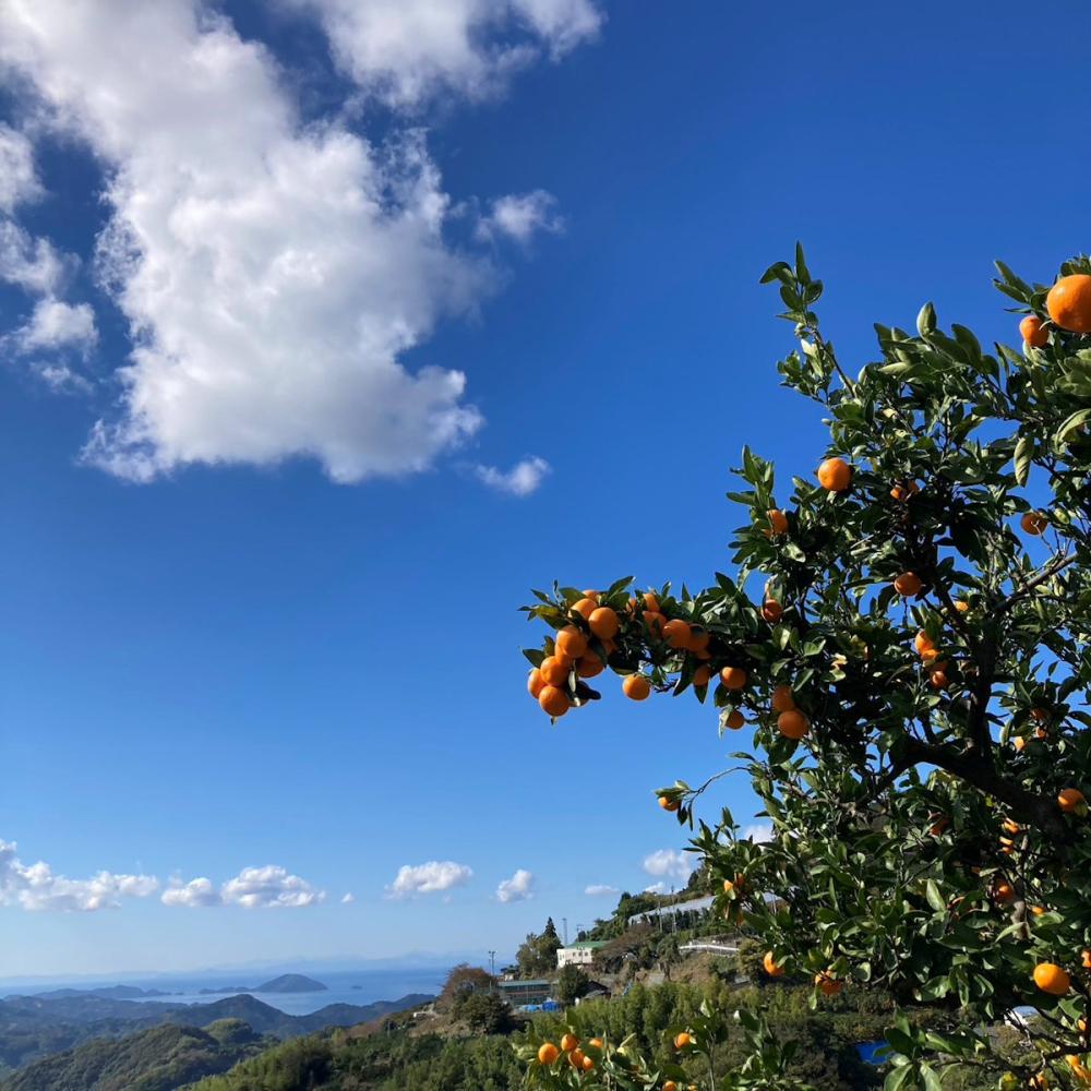 宇和海が眼下に天気の良い日は遠くに九州が望めます。若者が樹々たちと語りあいながら日々成長しています。簡単に皮がむけて中の果汁だけでなく、内皮もぜひお召し上がりください。寒いときにはみかんが一番!!