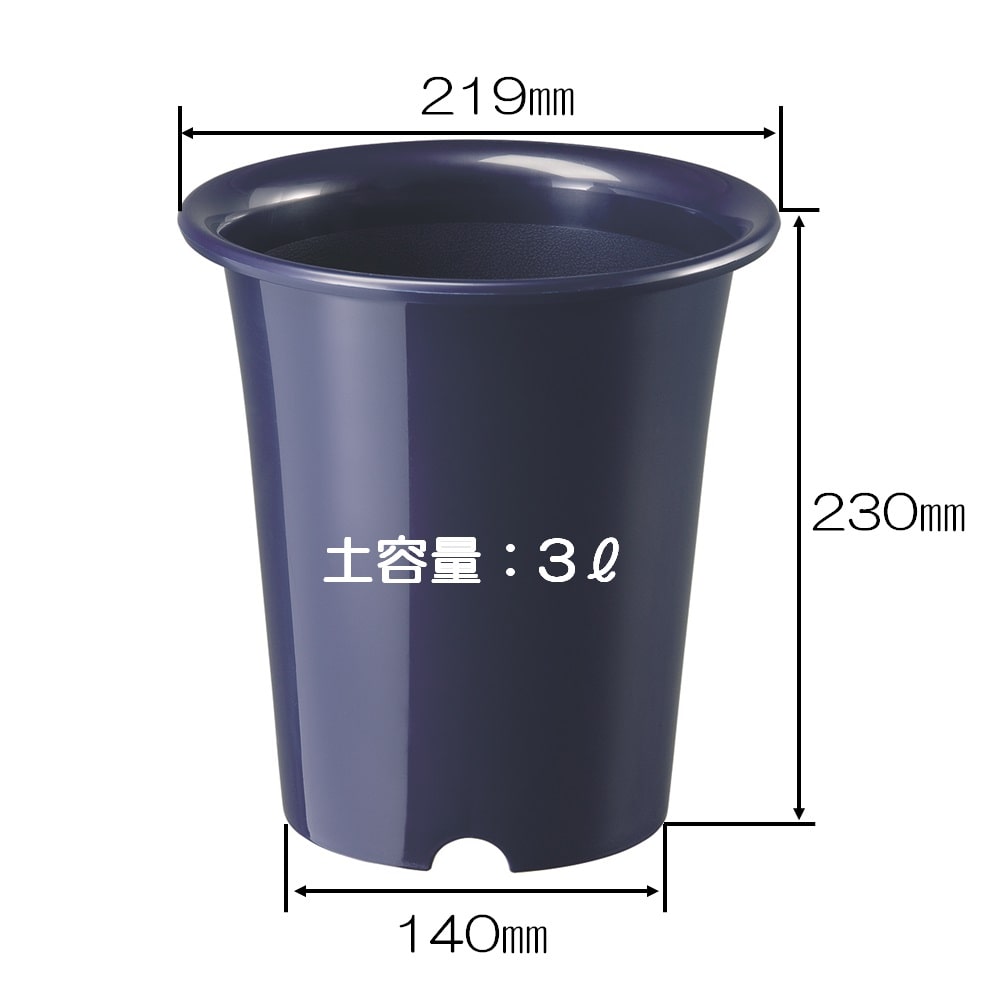 ブルーとブラックの2色。落ち着いた色合で、使用場所を選びません。上部外径219mm、上部内径180mm、下部外径140mm、下部内径135mm