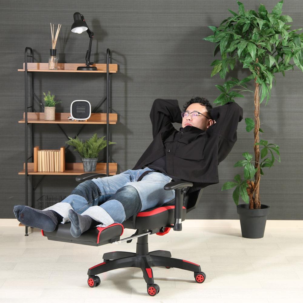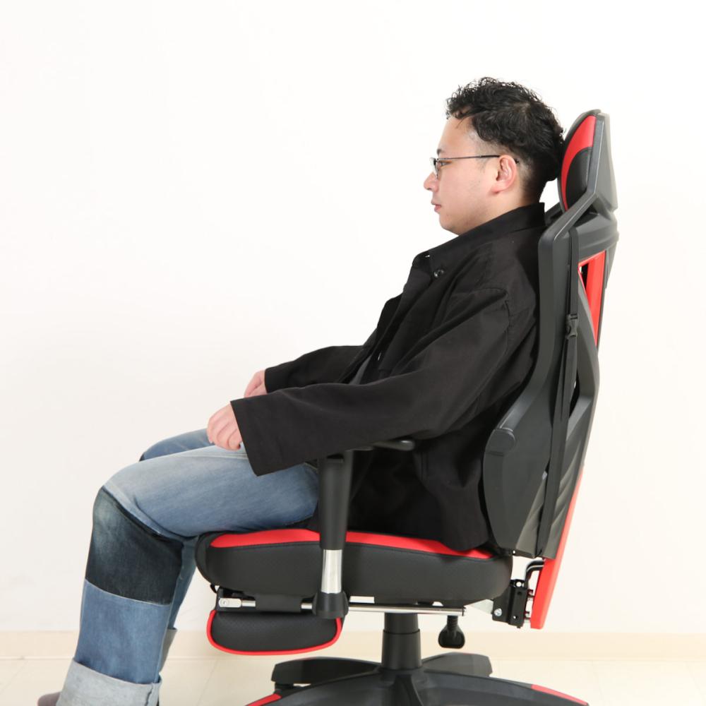 【サイズ】 約幅62×高さ65×奥行80cm 座面高:42~49cm 座面サイズ:53×56cm 【材質】 構造部材:金属(鋼)、合板 表面加工:エポキシ樹脂塗装 張り材:合成皮革(PU)、ポリエステル クッション材:ウレタンフォーム 【機能】 リクライニング角度:90°~150° オットマン付き 【耐荷重】 80kg 【原産国】 中国 ※お客様組立商品です。