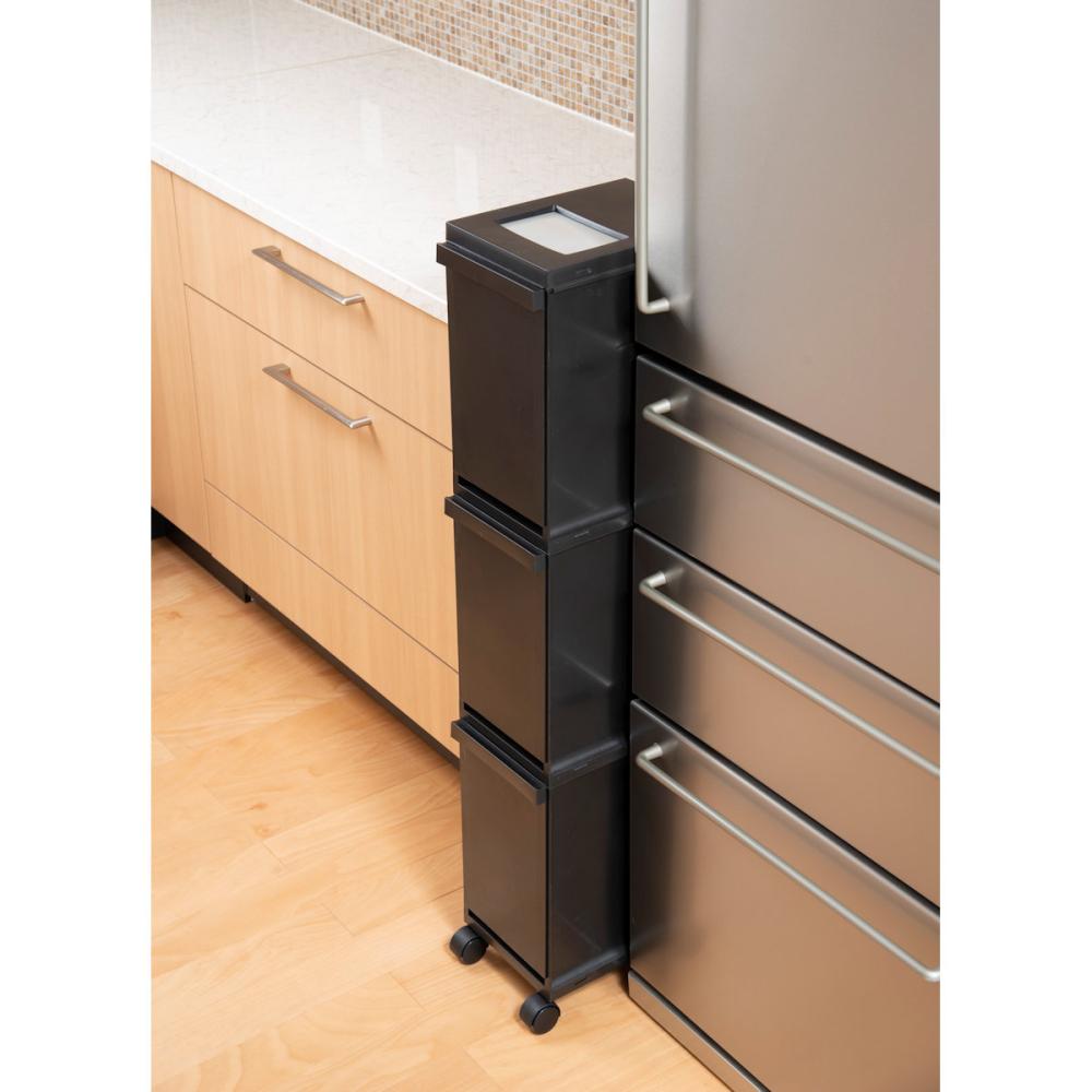 ・上からさっと捨てられる便利なプッシュ蓋 ・すき間に入るすっきりスリムタイプ ・省スペースで分別 ・移動が楽なキャスター付
