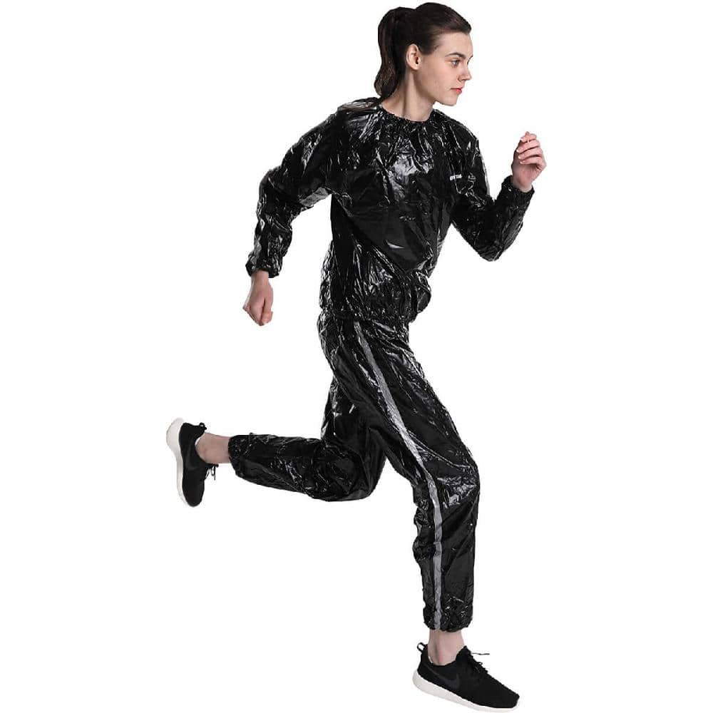 上下セットで着用して、体温をにがしません。 服の下にも着用可能。 ハイパワーサウナスーツについて。 ハイパワーサウナスーツを着用します。着用した状態でウォーキング・ジョギング・体操などを行います。 ご注意 ご自身の体力に合わせた運動を行ってください。身体に何らかの症状や不安を抱えているかたは、エクササイズの前に専門家に相談する事をお勧めします。 効果効能に個人差があります。 サイズ: Mサイズ 対応サイズ(:約)身長~170cm、ウエスト~75cm 材質:ポリ塩化ビニル 強化・効果のある部位:発汗・ウォーキング