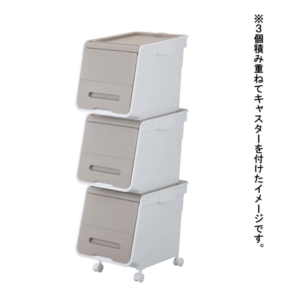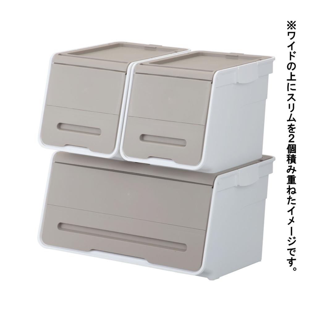 積み重ねは3段まで可能(1段あたりの耐荷重は4kg)同サイズの積み重ねはもちろん、ワイド1つにスリム2つを並べて積むことができ、収納する物に合わせて組み合わせを選ぶことができます。