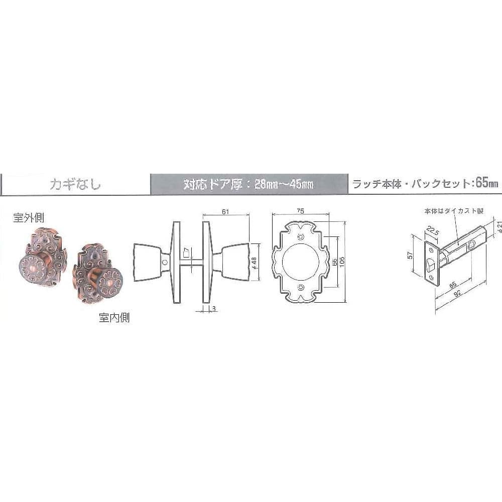 対応ドア厚28mm~45mm。バックセット65mm。取付ビスピッチ66mm。
