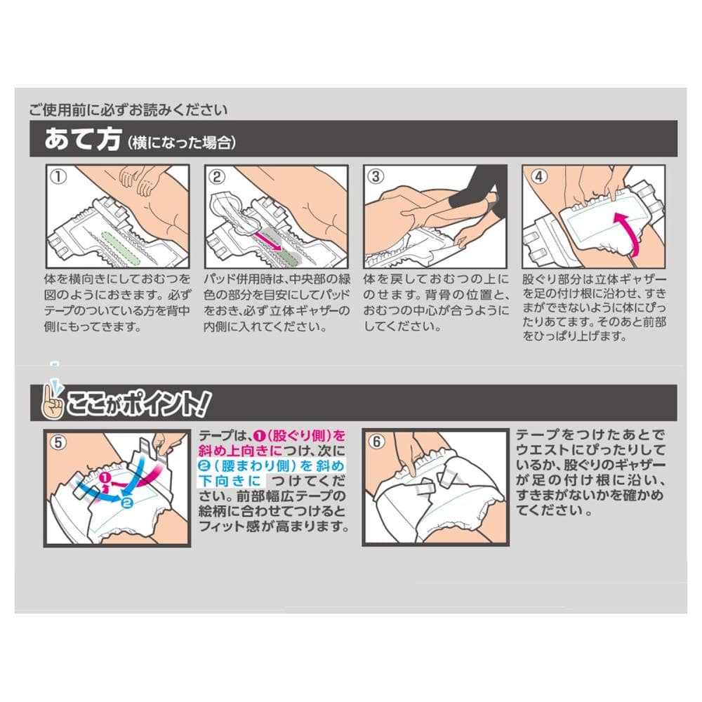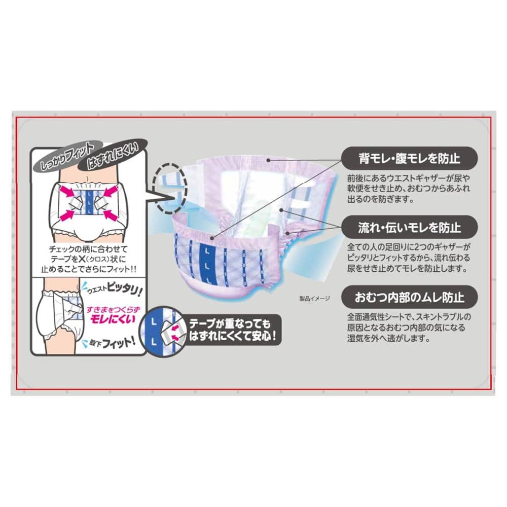 (社)日本衛生材料工業連合会のガイドラインに基づく表示 【品名】大人用紙おむつ 【適用対象】ヒップサイズ:85cm-120cm 【素材】 表面材:ポリオレフィン系不織布 吸水材:綿状パルプ/吸収紙/高分子吸水材 止着剤:ポリエステル/ポリオレフィンなど 防水材:ポリオレフィン系フィルム 結合材:スチレン系エラストマー 伸縮材:ポリウレタン糸 外装材:ポリエチレン 【入数】17枚 【使用上の注意】 (1)汚れた紙おむつは早くとりかえてください。 (2)テープは直接お肌に付けないでください。 (3)誤って口に入れたり、のどにつまらせることのないよう、保管場所に注意し、使用後はすぐに処理してください。 【保管上の注意】 ●開封後は、ほこりや虫が入らないよう、衛生的に保管してください。 【使用後の処理】 ●使用後の紙おむつに付着した大便は、トイレに始末してください。 ●汚れた部分を内側にして丸めて、不衛生にならないように処理してください。 ●トイレに紙おむつを捨てないでください。 ●使用後の紙おむつの廃棄方法は、お住まいの地域のルールに従ってください。 ●外出時に使った紙おむつは持ち帰りましょう。