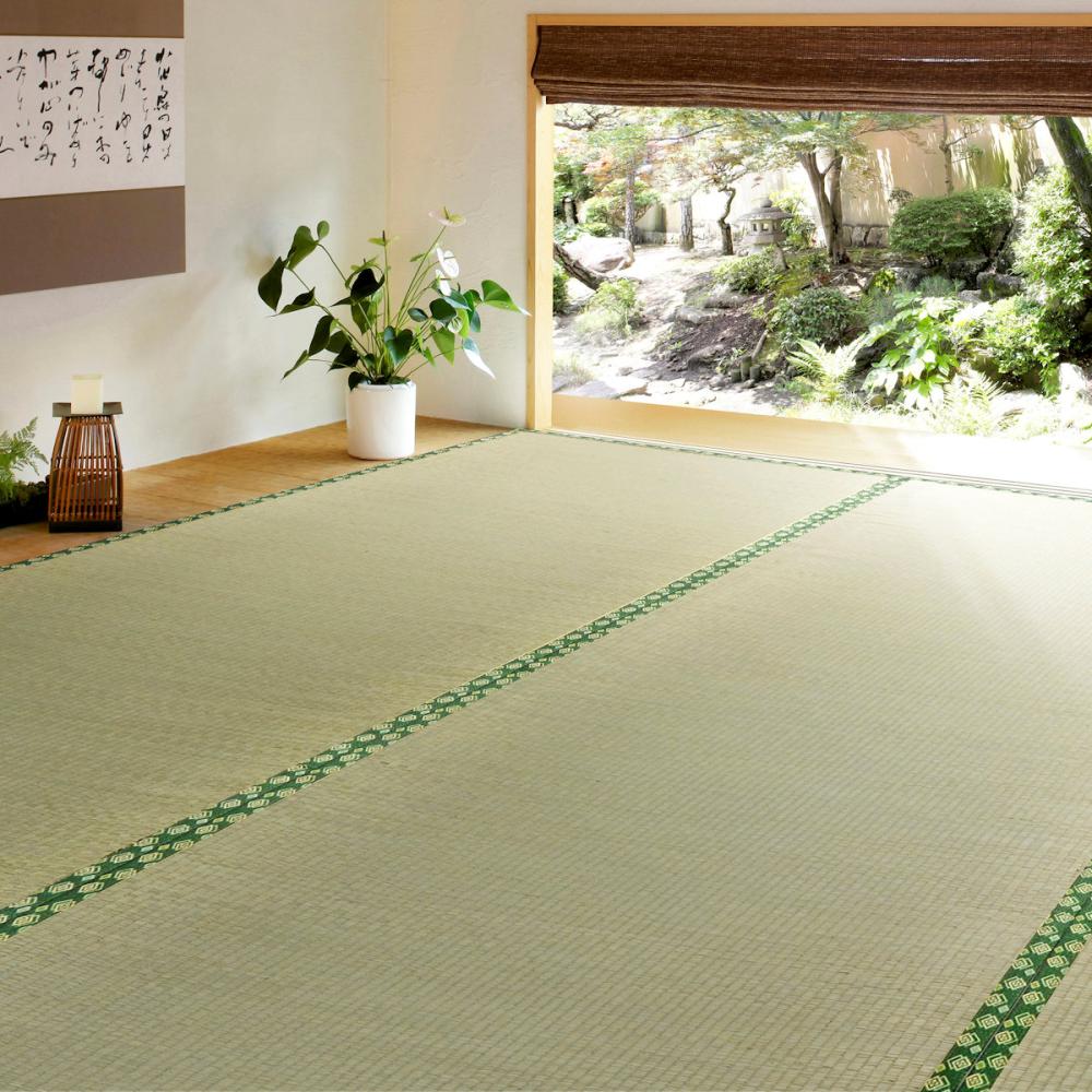※畳表と同じ織り方です。経糸が表に出にくく表面が滑らかです。目地にゴミがたまりにくく汚れにくい特徴があります。