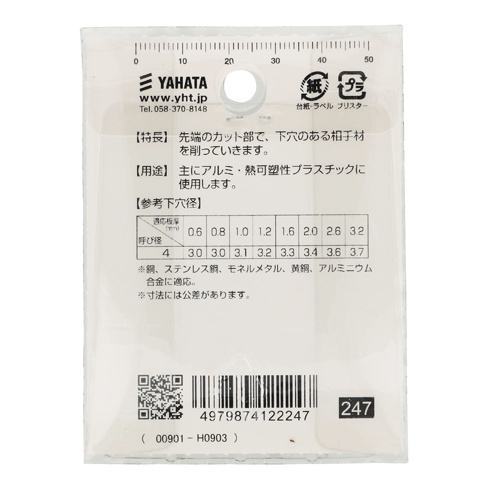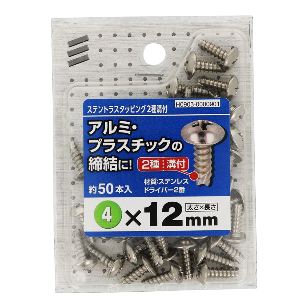薄い鋼板に締結する場合に使用します。規定の下穴をあけた鋼板(ねじのピッチより薄い)にセルフタッピングしながら締結します。ねじのカット部で切削するので切り粉が出ます。なべ頭に比べ頭部が大きいので、締付け部材の取付け穴を隠すのに便利です。